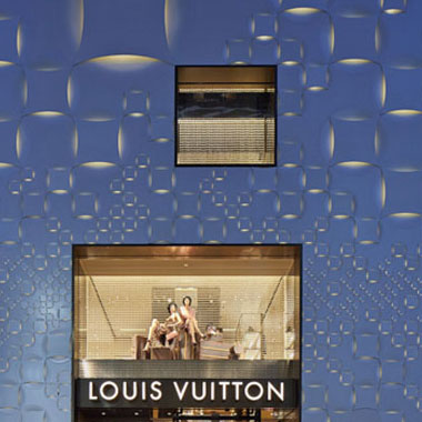 東京松屋銀座 LV品牌專營(yíng)店形象,其引人注目的幾何建筑外殼設(shè)計(jì),來自日本著名建筑設(shè)計(jì)師青木淳(Jun Aoki)。